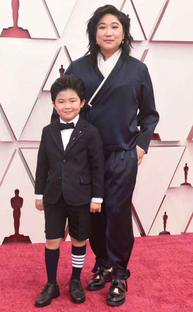 Oscars 2021 fashion would have been incomplete without this fashion sensation, Alan Kim, the youngest yet the most stylish actor on the red carpet. Kim chose a Thomas Browne suit as his Oscars 2021 fashion outfit on the red carpet. He accessorized it with a pair of socks and a customized VRAI lapel pin.